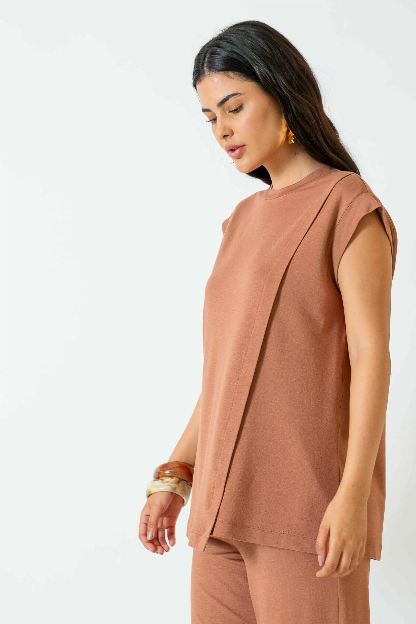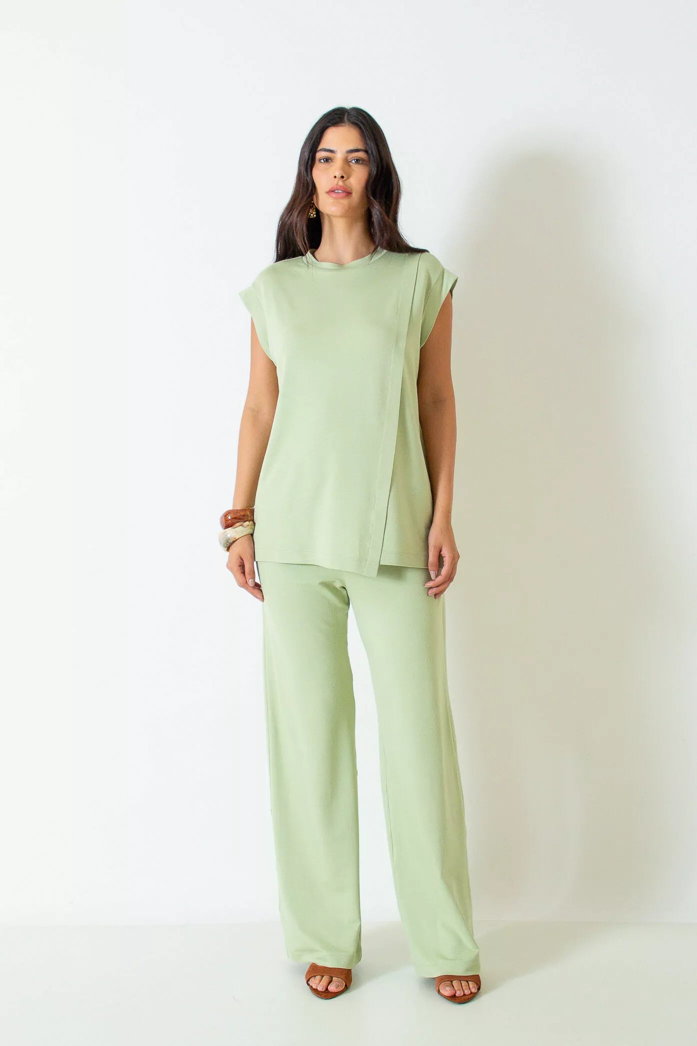 Detalhes: Conjunto moletinho, regata transpassada com calça reta