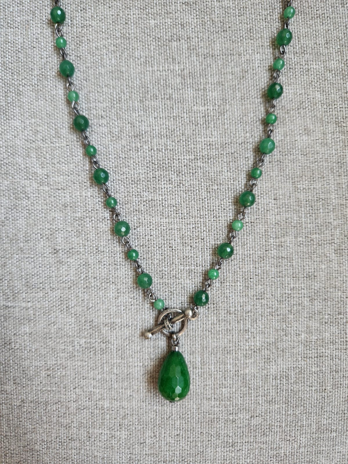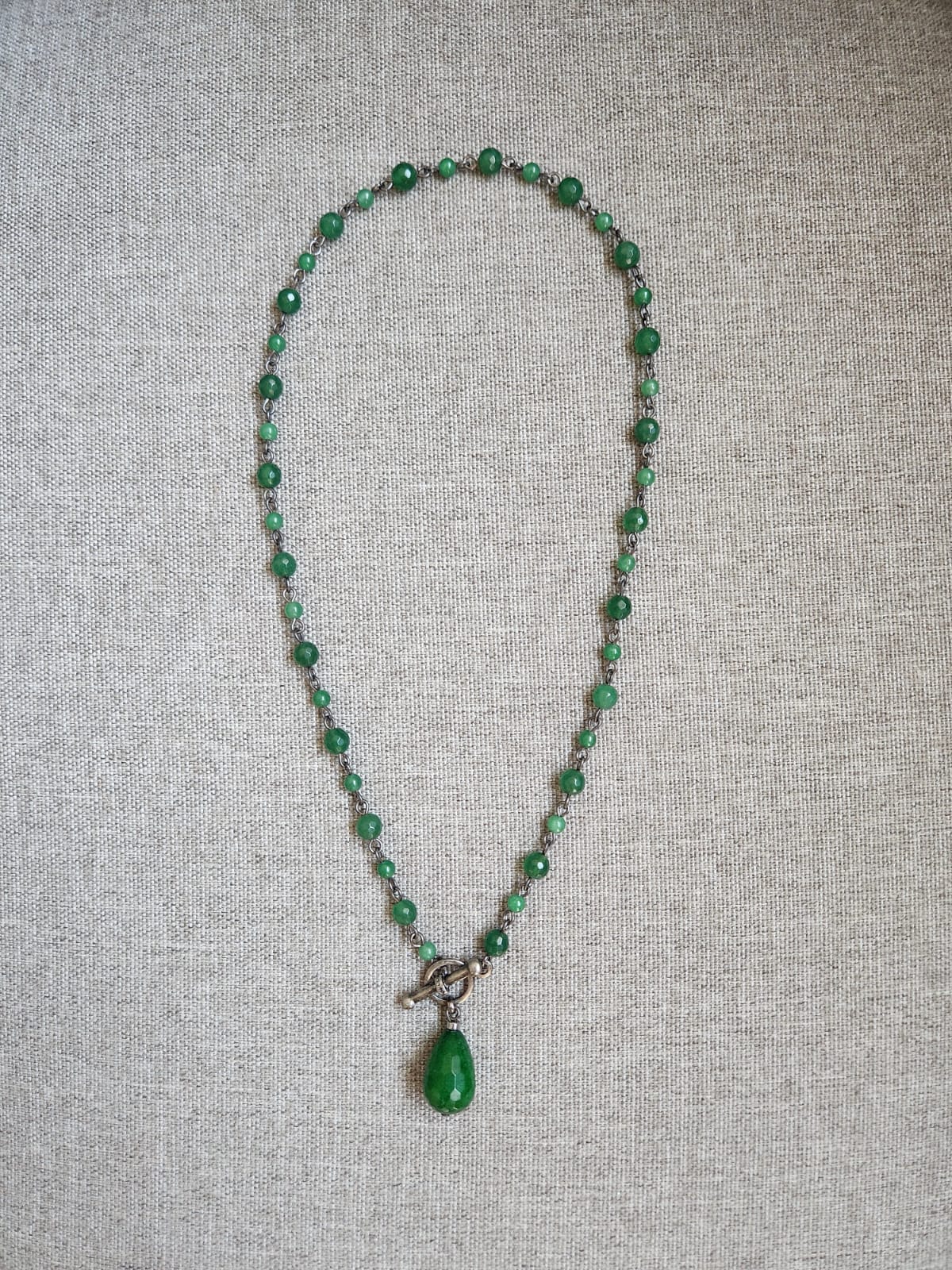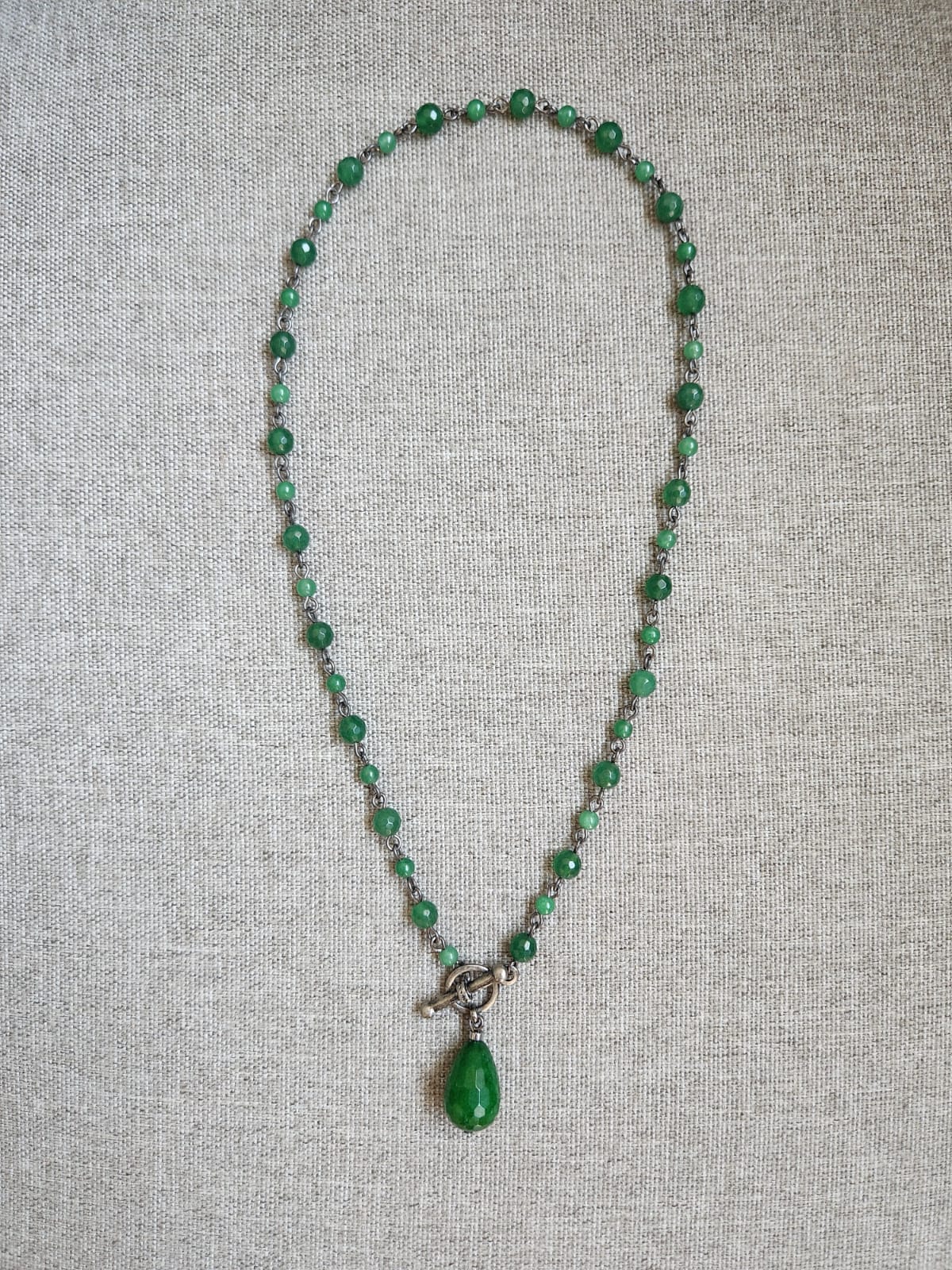 Colar de comprimento médio, cristais com pingente em pedra natural.