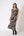 Vestido midi em fluity estampado com decote V e saia franzida.