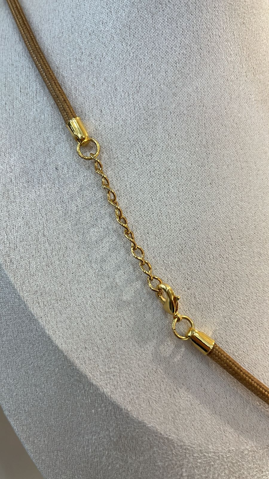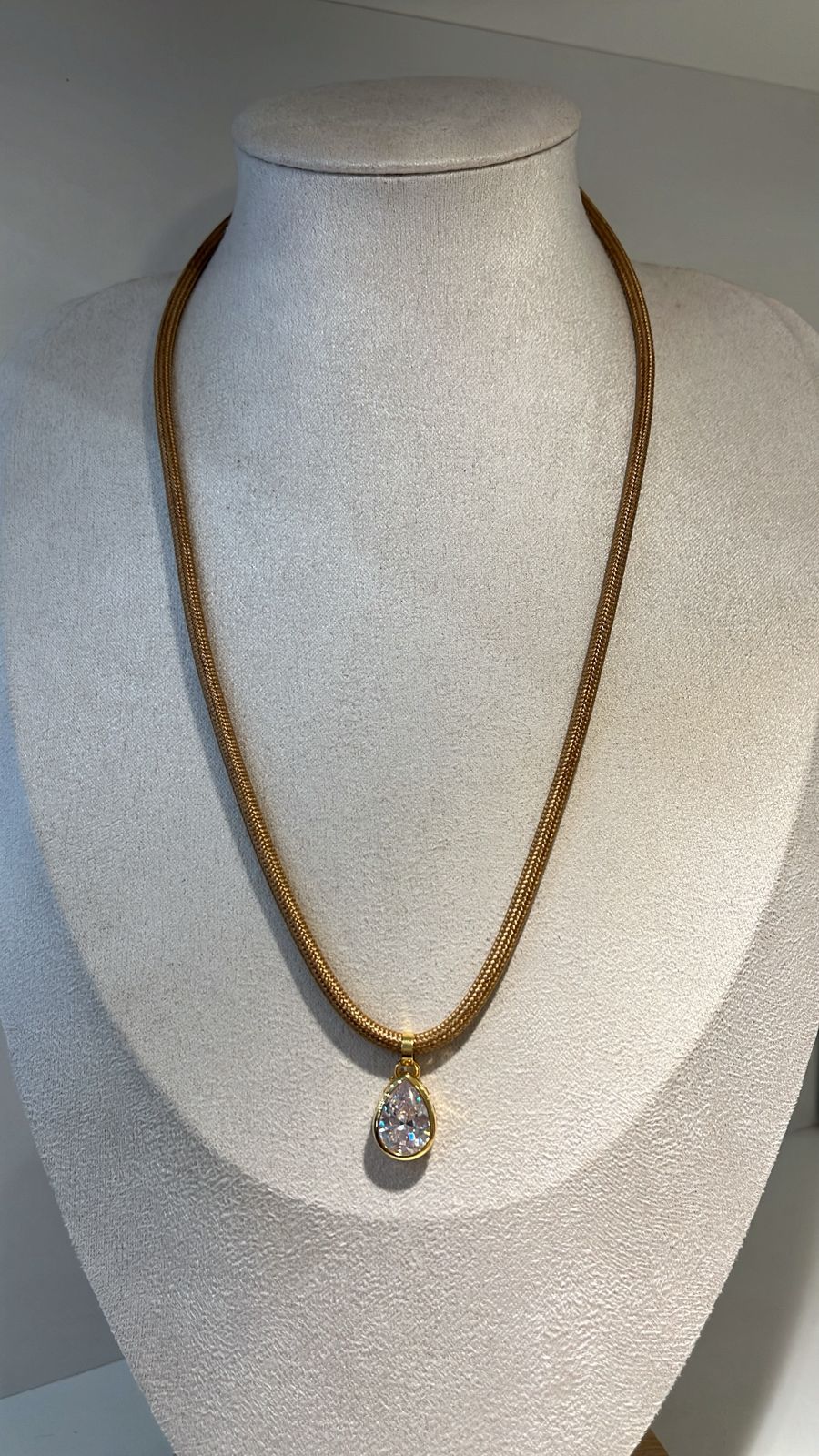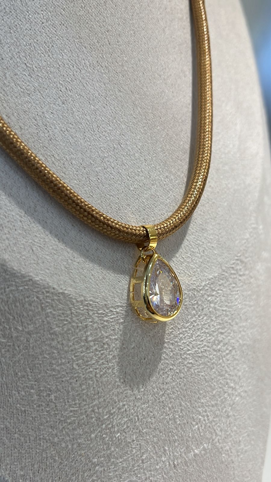 Detalhes: Colar cordão bege, pingente gota em zircônia