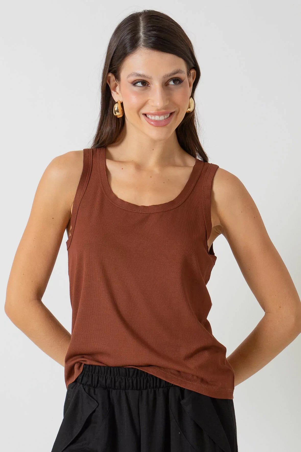 Ragata canelada com decote e cava à fio.