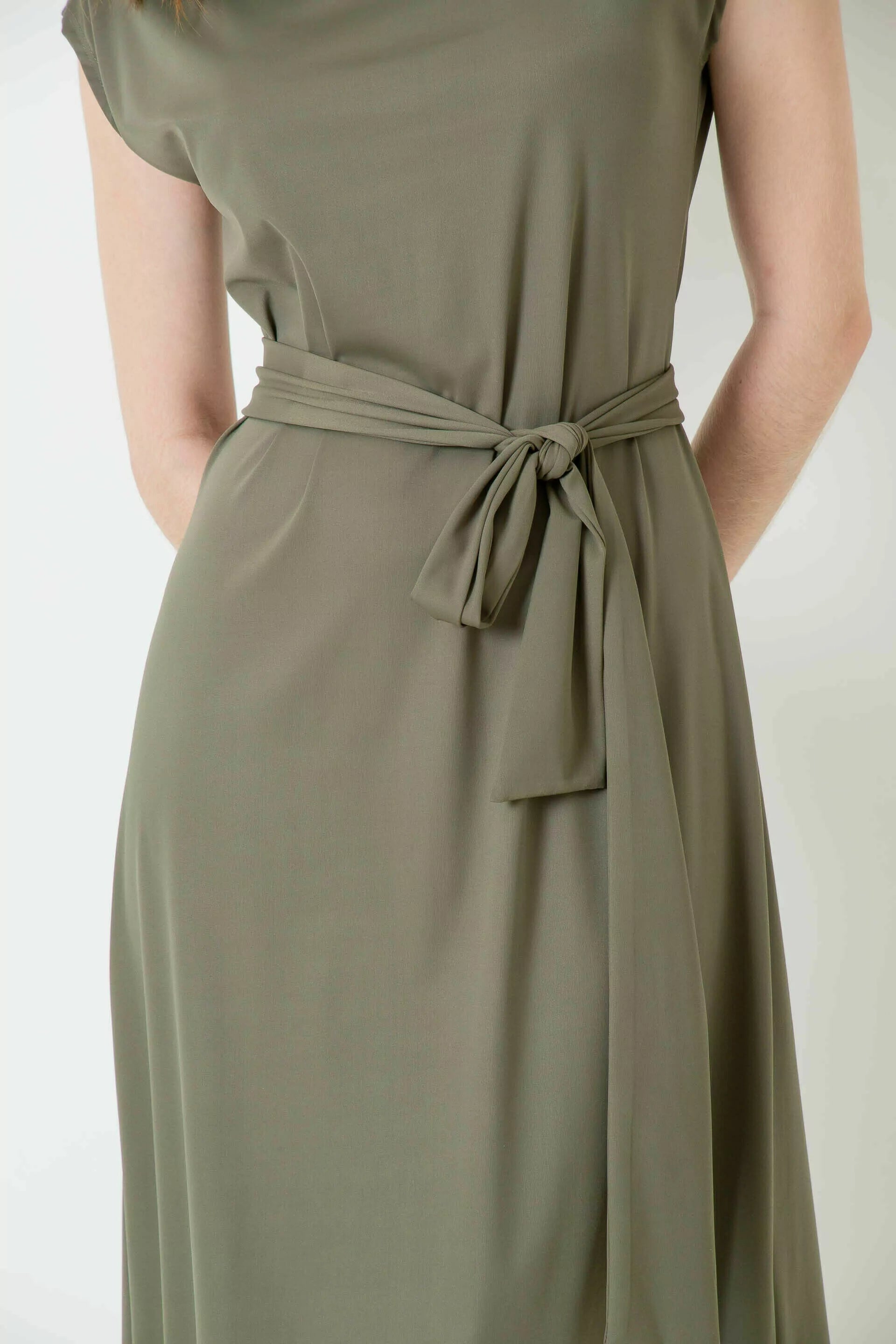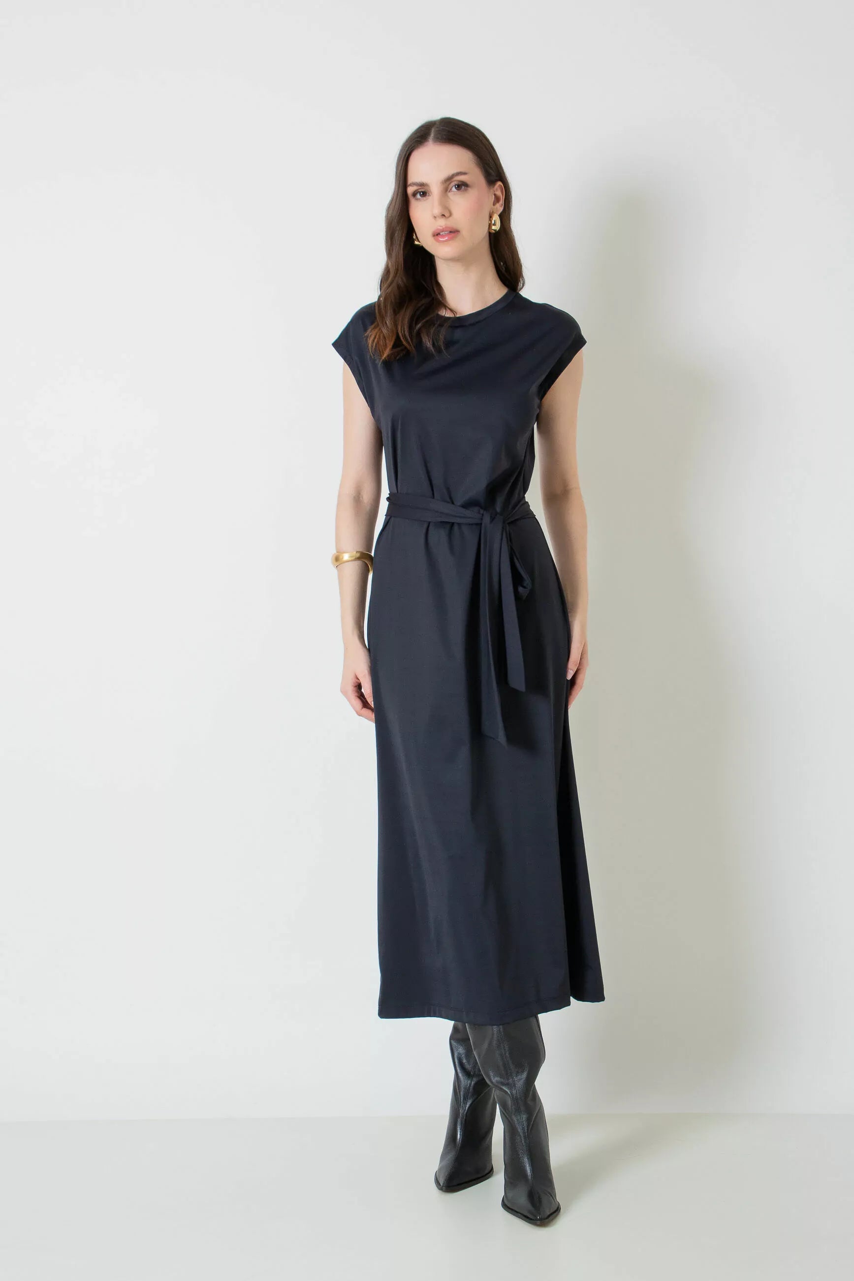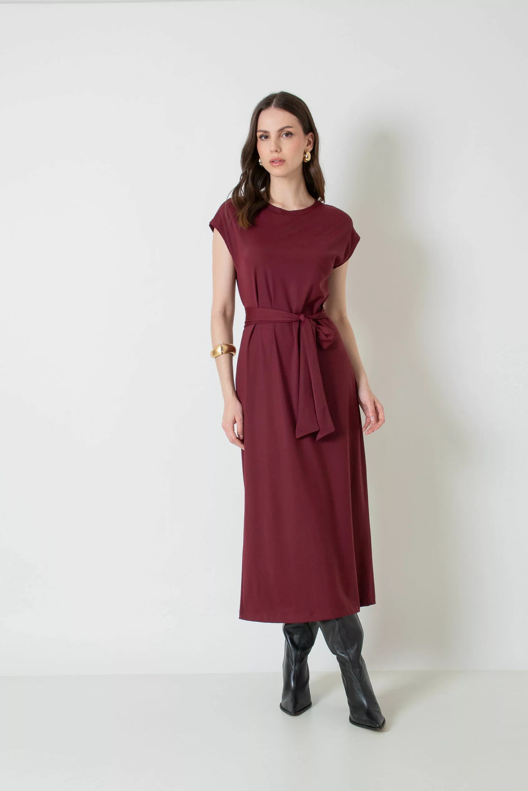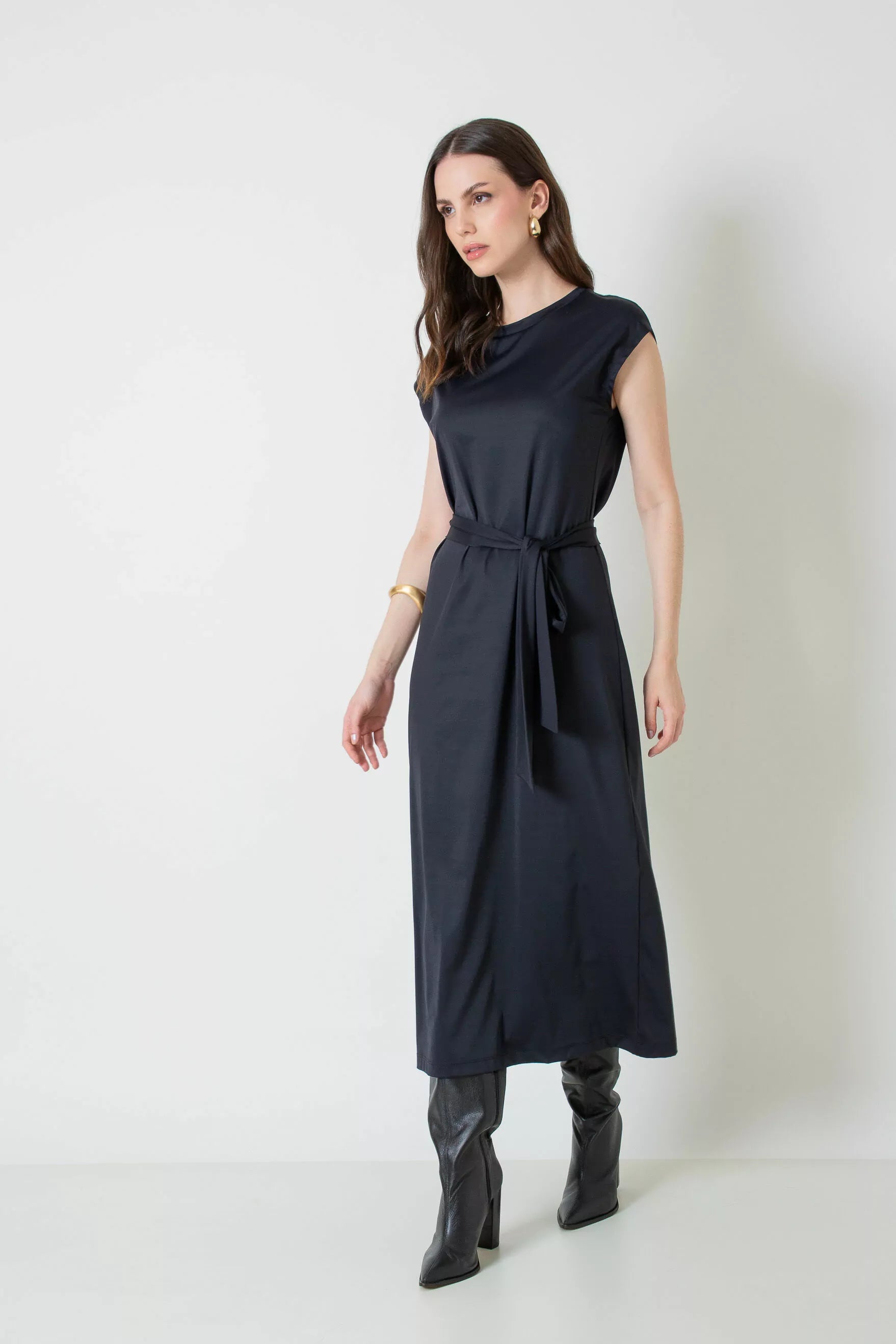 Vestido midi com faixa.